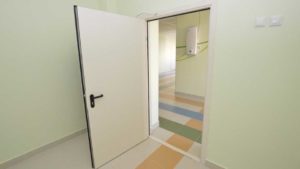 В-третьих, это усиленная конструкция. Полотна изготавливаются с гнутыми профилями. Это предотвращает его деформацию при воздействии огня. С обеих сторон дверного полотна используются металлические пластины толщиной 1,5 мм. Дверное полотно и дверная коробка снабжены специальными уплотнителями, защищающими от холодного и горячего воздуха. Полотно и внутренняя часть коробки наполнены минеральной ватой . Как правило, двери оснащены огнеупорным замком и несъемным элементом.